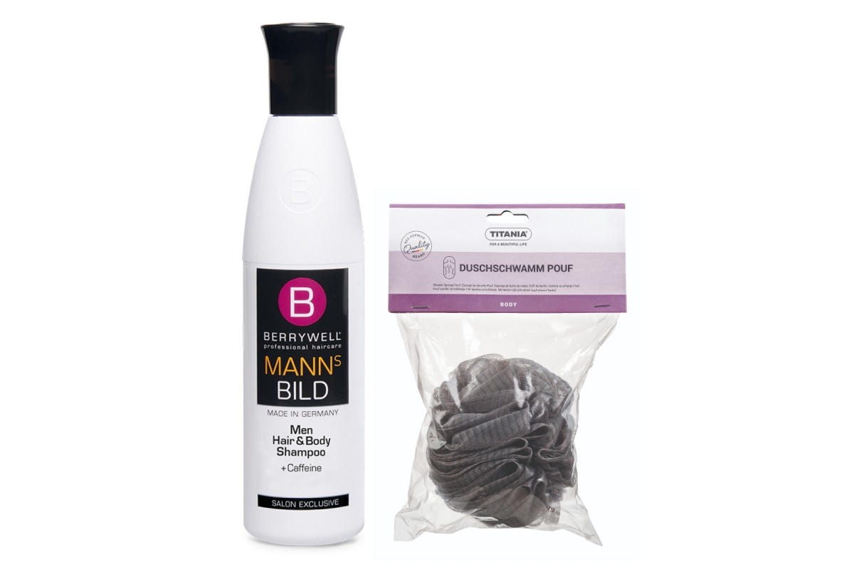 Сет Мужской шампунь для волос и тела + Мочалка-пуф для душа